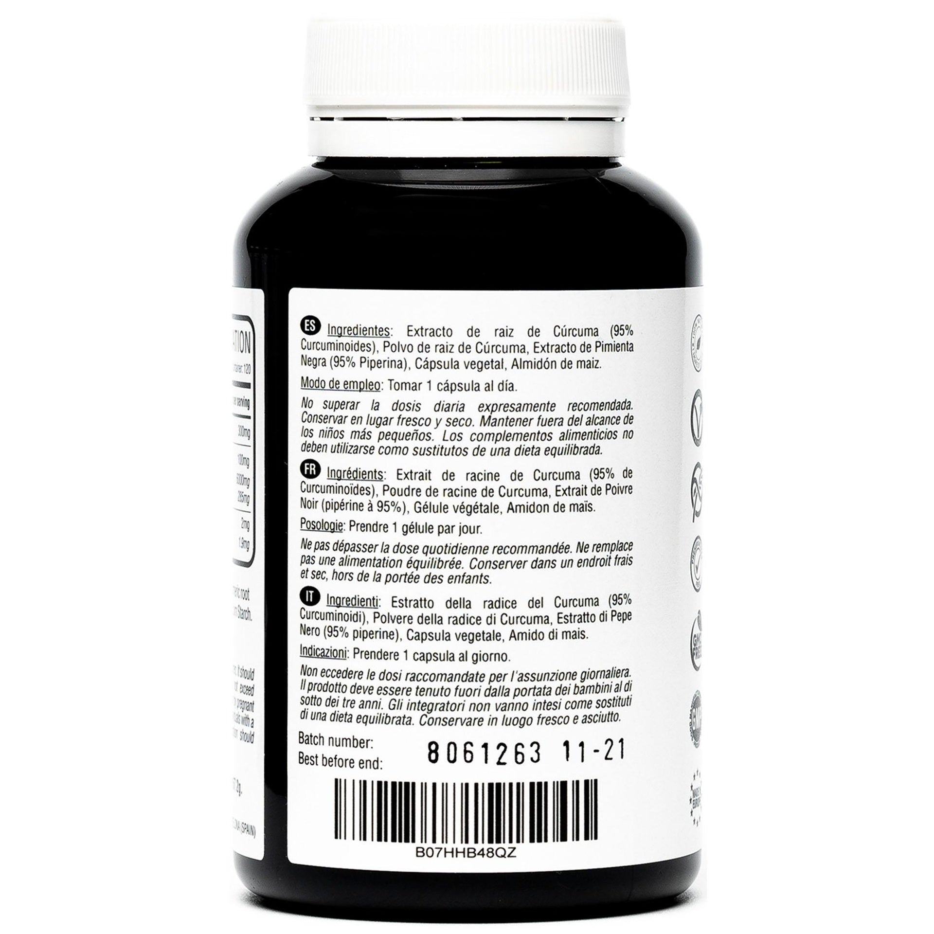 Ausgezeichnete Formel auf Basis von Kurkumawurzelextrakt (95 % Curcuminoide), Pulver von Kurkumawurzel- und schwarzer Pfefferextrakt (95 % Piperin), Es fördert die Durchblutung, verbessert die Herz-Kreislauf-Gesundheit und Bekämpft Entzündungen und Gelenkschmerzen. Hervorragendes Preis-Leistungs-Verhältnis: Wir bieten 120 vegane Kapseln pro Flasche an. für 4 Monate.