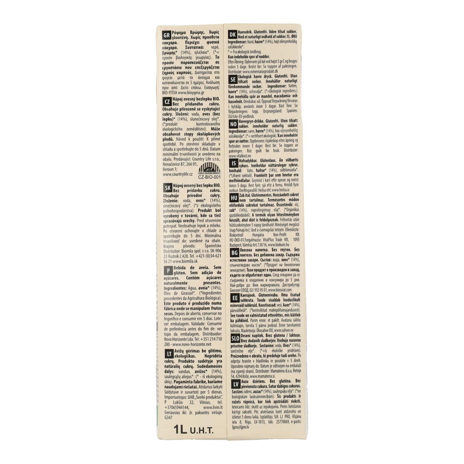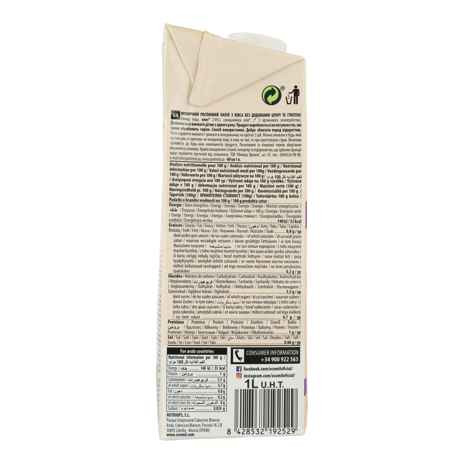 All information on "Ecomil Organic Gluten-Free Oat Drink 1 L"
