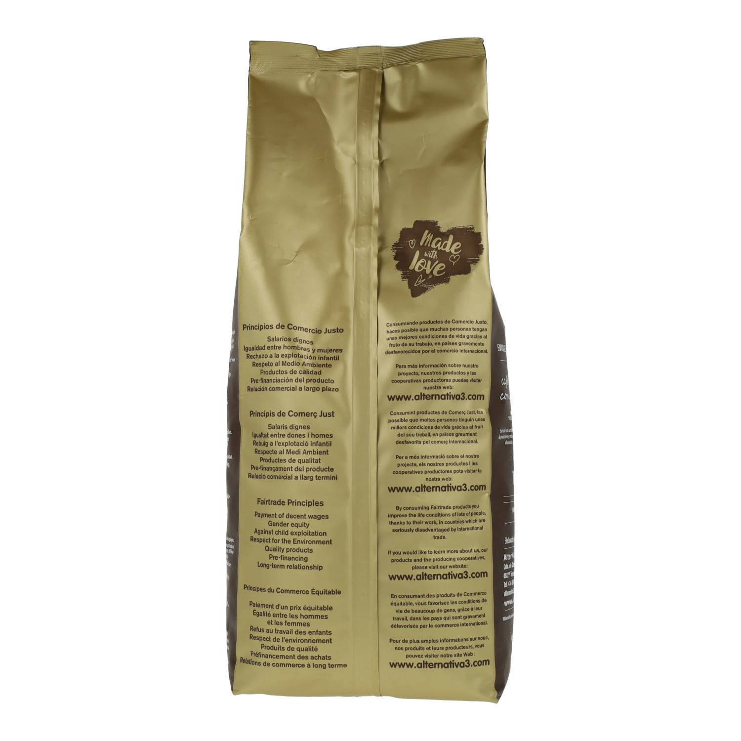 - Bolsa de 1 kg con válvula desgasificadora para conservar frescura y aroma.