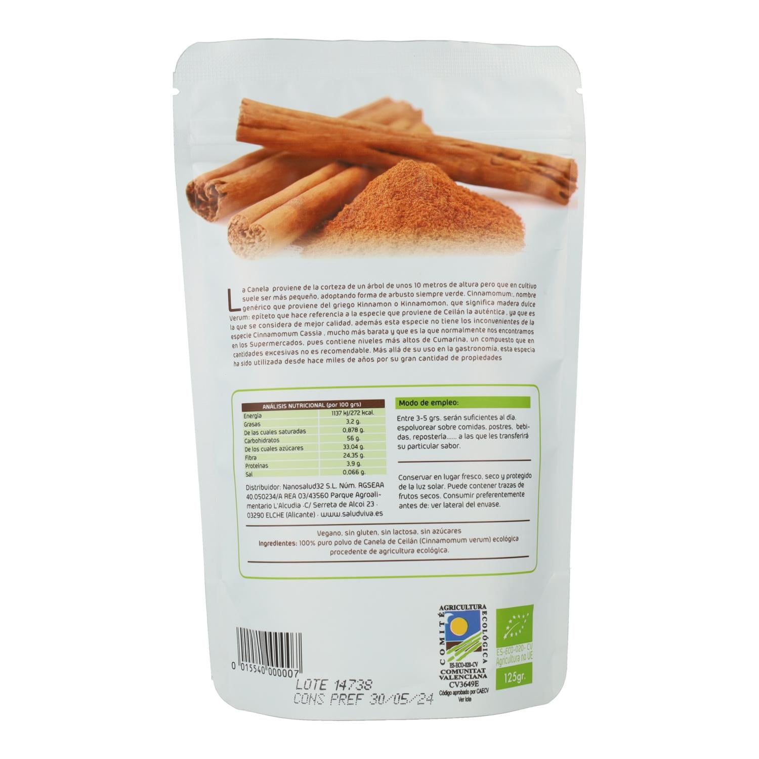 All information on "Ceylon cinnamon powder 125 g, Salud Viva"