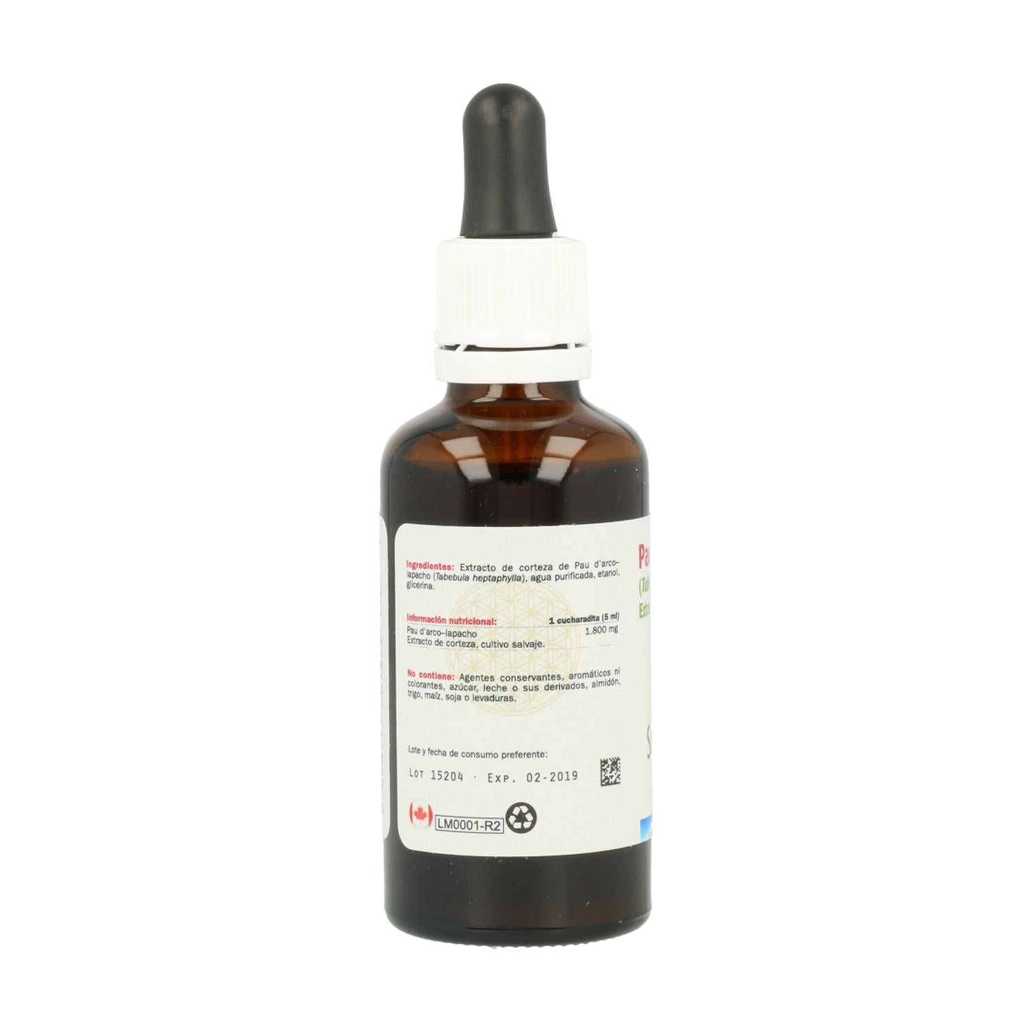 Lapacho PauD´arco es un complemento alimenticio a base de un extracto líquido de Lapacho o Pau D’Arco de cultivo salvaje. El Lapacho o Pau D’Arco es la corteza interna del árbol Tabebuia heptaphylla. Crece en las selvas del Sur de América, especialmente en Brasil. 2,5 ml de nuestro producto aporta 600 mg de Pau d'arco 100% corteza.