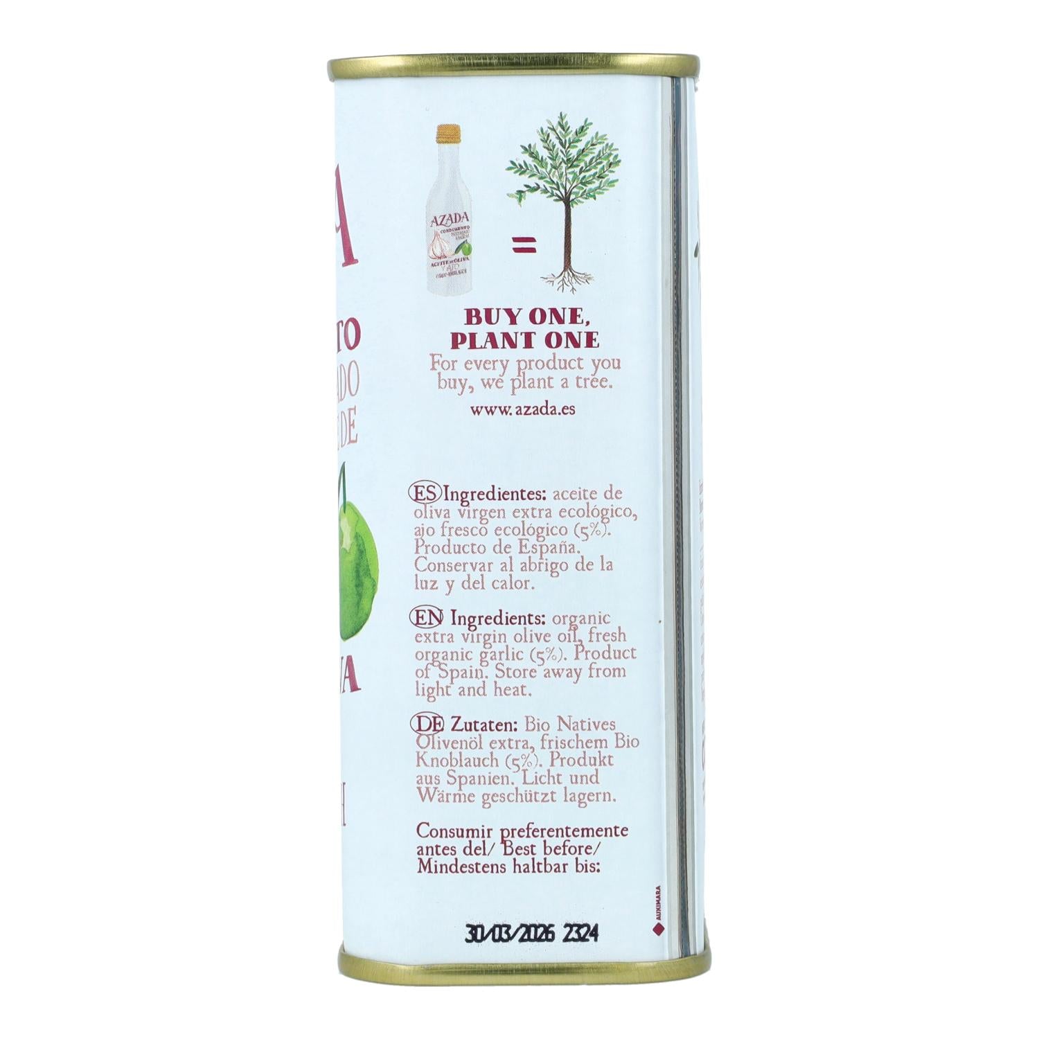 | Ingredientes: | Aceite de oliva virgen extra ecológico, Ajo fresco ecológico (5%) |