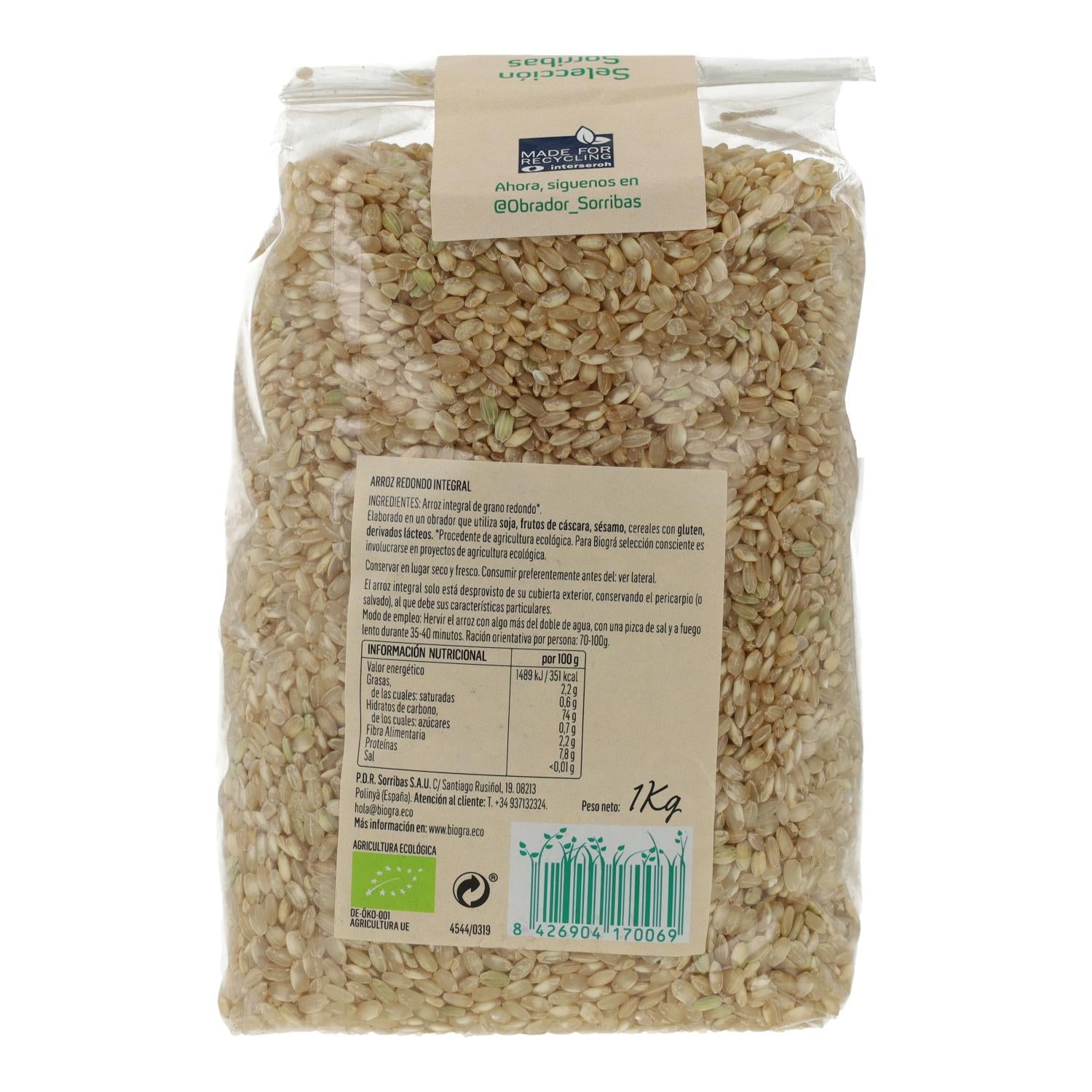 Toda la información sobre "Arroz Integral grano redondo Biográ, 1 kg"