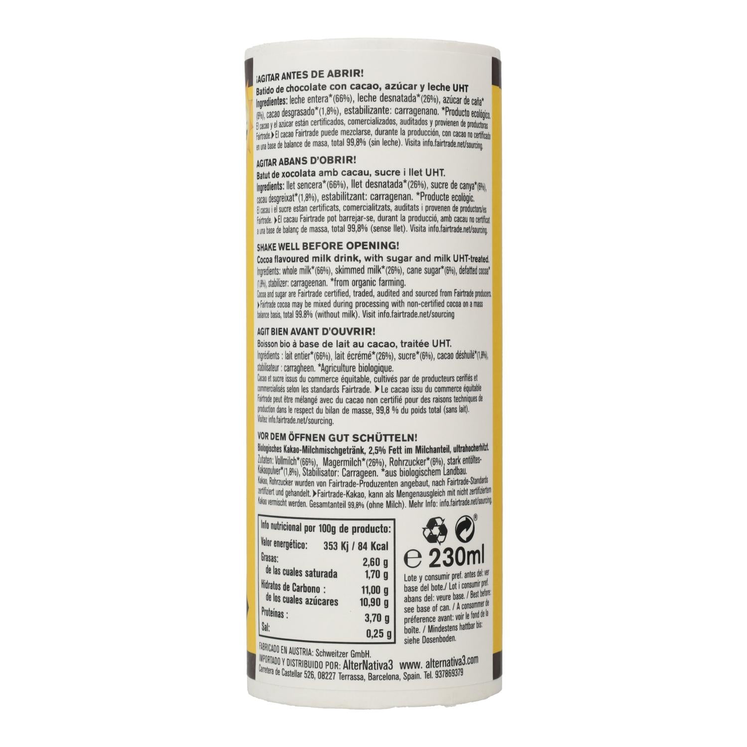 Toda la información sobre "Batido de chocolate Bio Alternativa3 230ml"