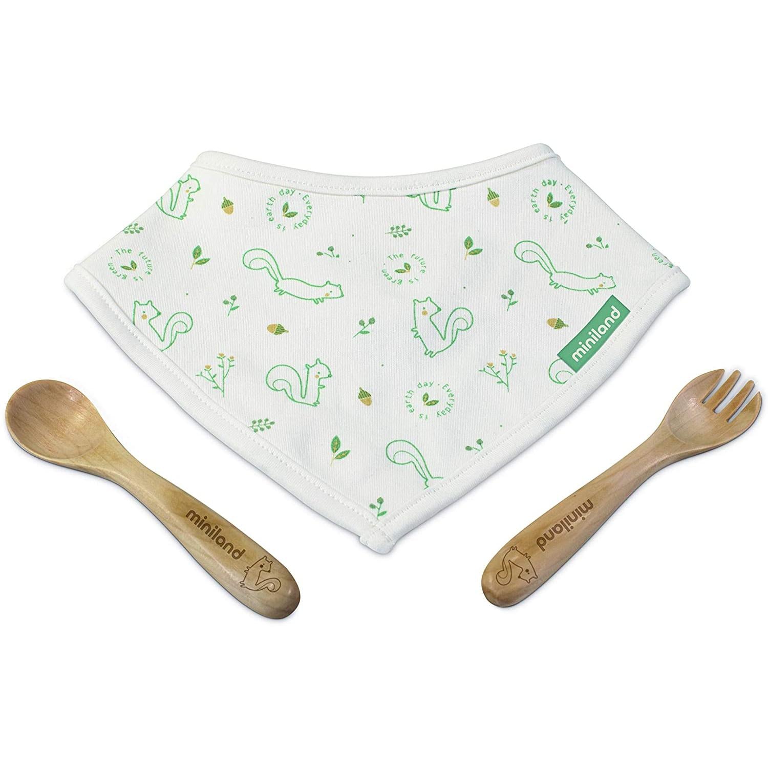 Bandana de algodón natural, una Cuchara y un Tenedor de madera.