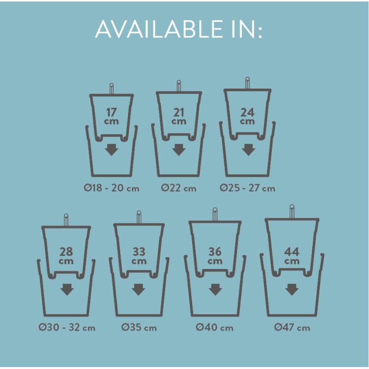 • ⌀ 17 x H 16 cm: Válido para macetas de ⌀ 18 - 20 cm