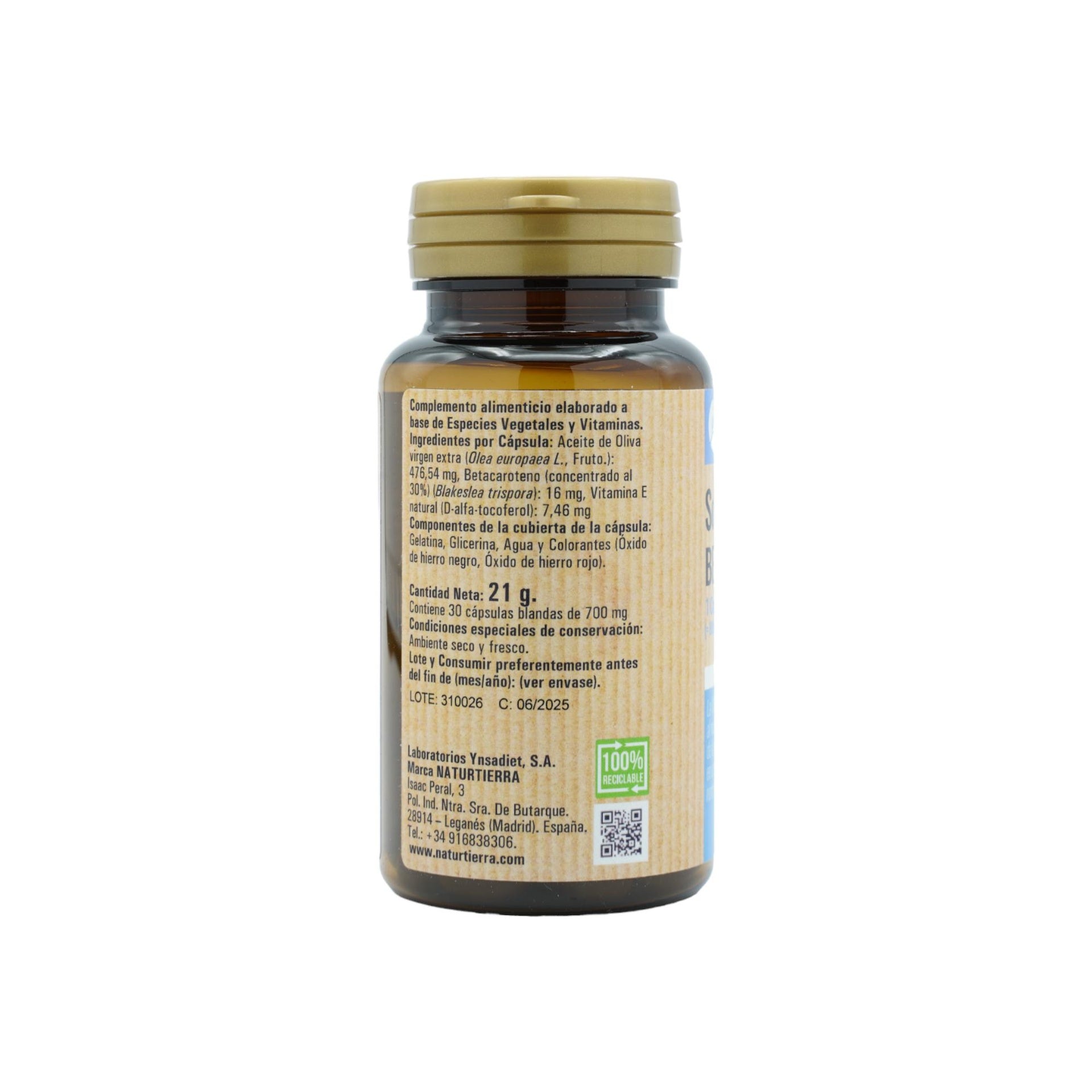 Solar complex betacaroneto, 30 cápsulas blandas. NaturTierra