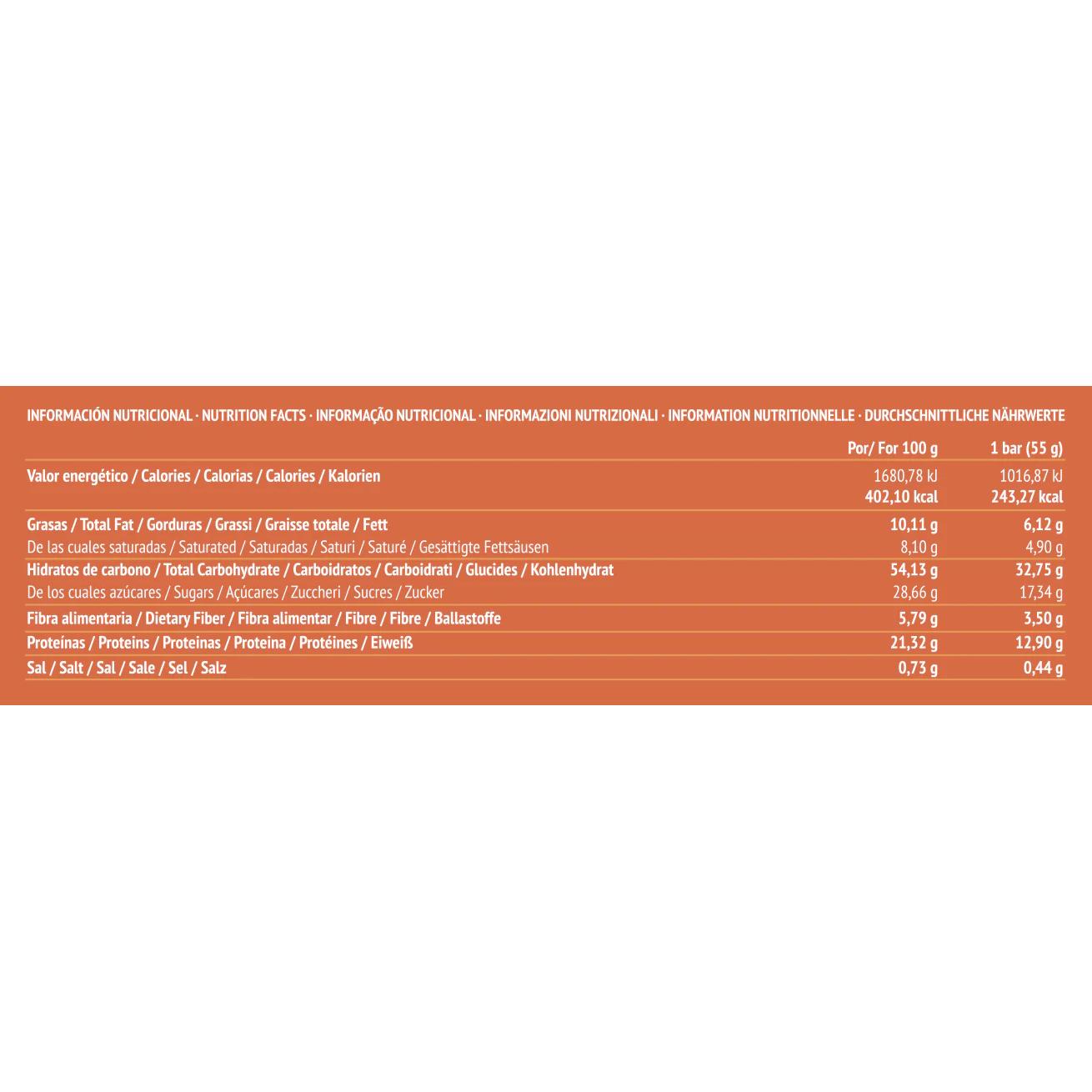 - Sin gluten, sin lácteos ni azúcares añadidos