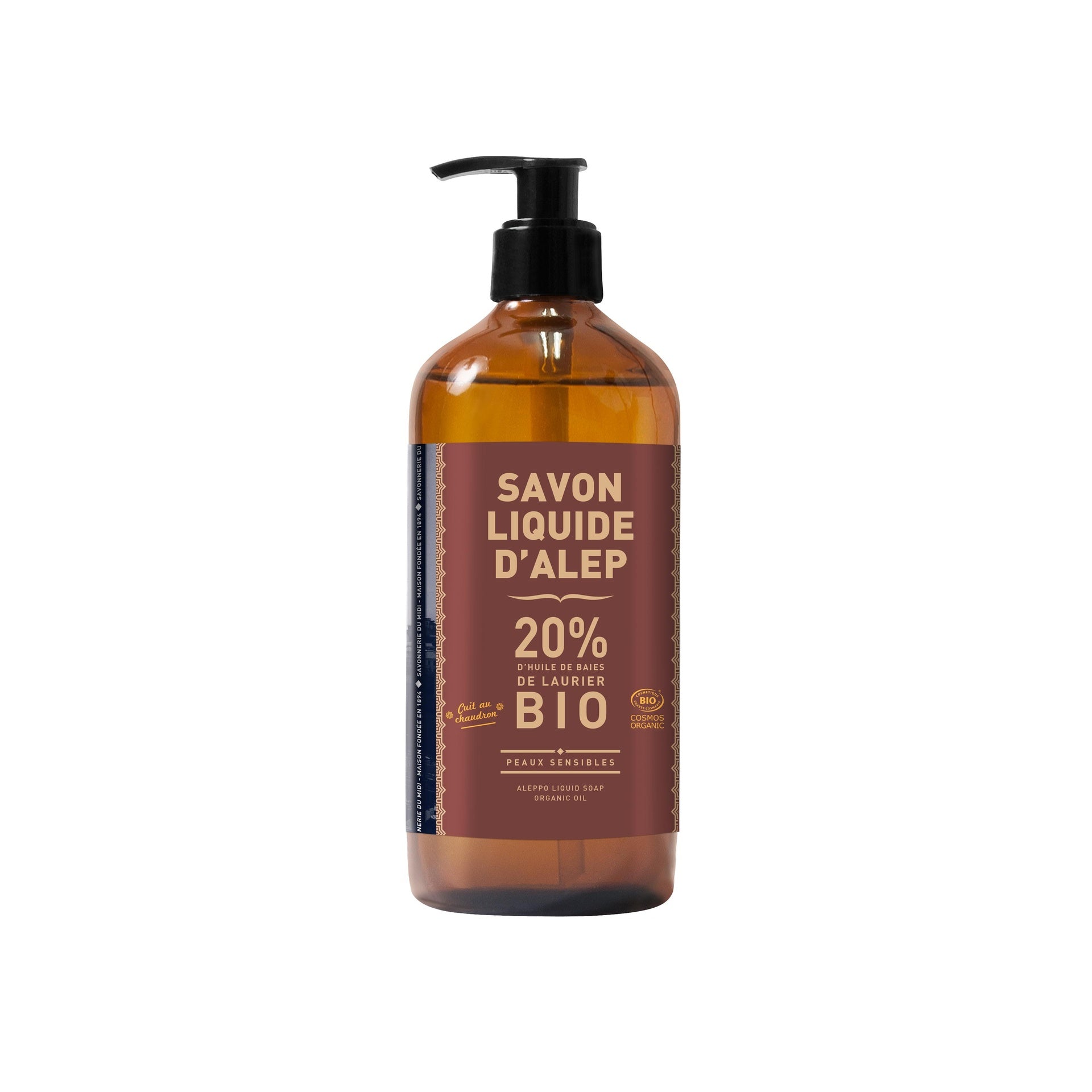 El jabón de Alepo líquido, hecho de acuerdo con la receta tradicional y cocinado en un caldero, está certificado como orgánico. Probado dermatológicamente, es un humectante diario para toda la familia y las pieles sensibles.