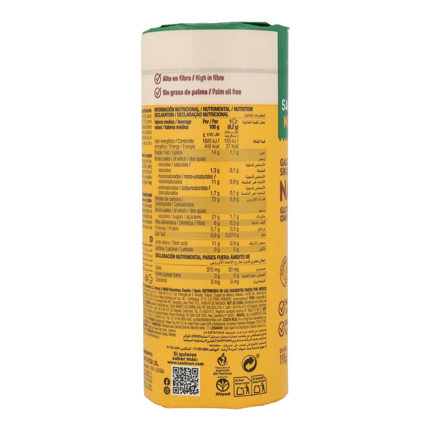 Alle informatie over "Glutenvrije koekjes met sinaasappelsmaak Santiveri Noglut 195 g"