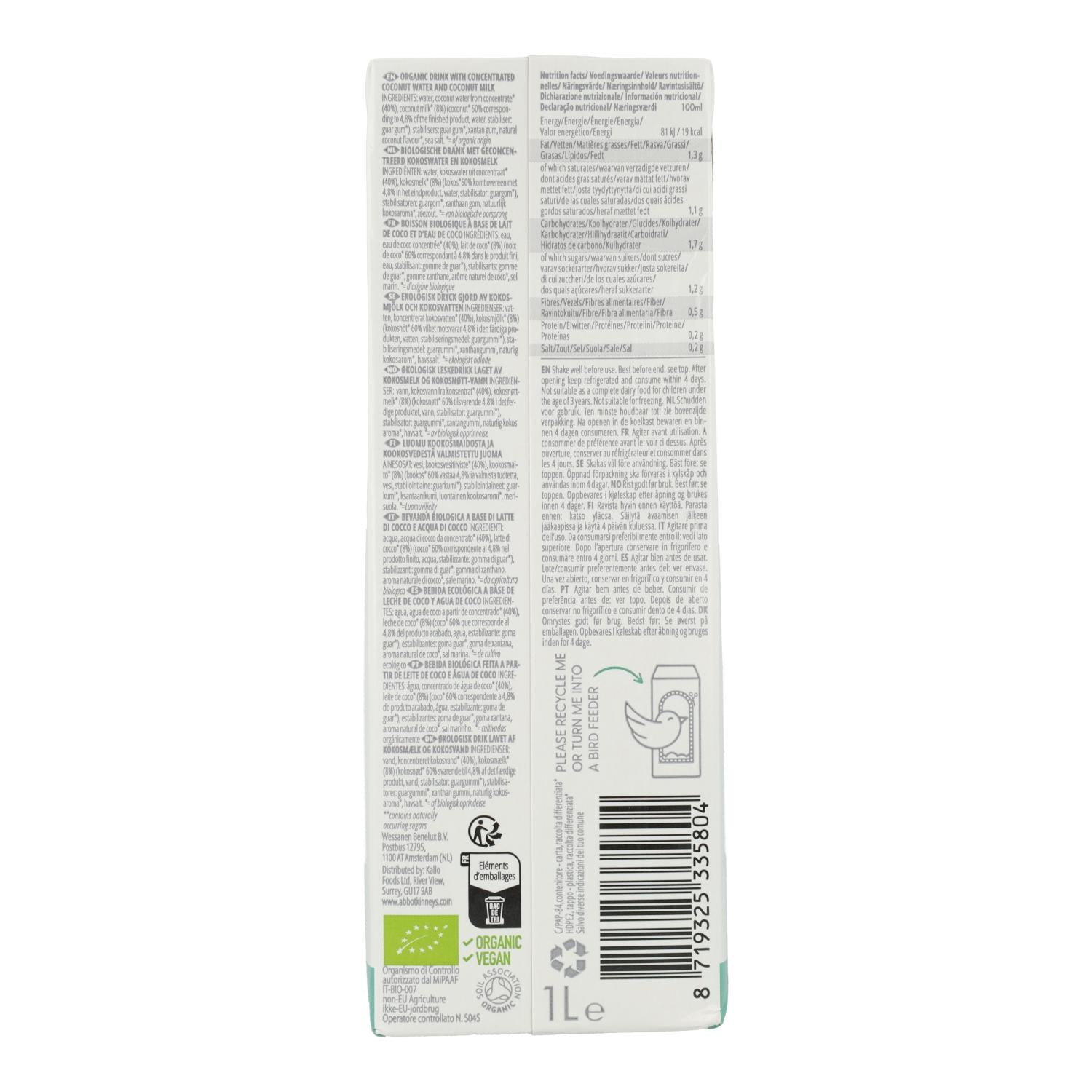 Alle informatie over "Pack 6x Bebida vegetal coco supreme Bio Abbot Kinney 1L"