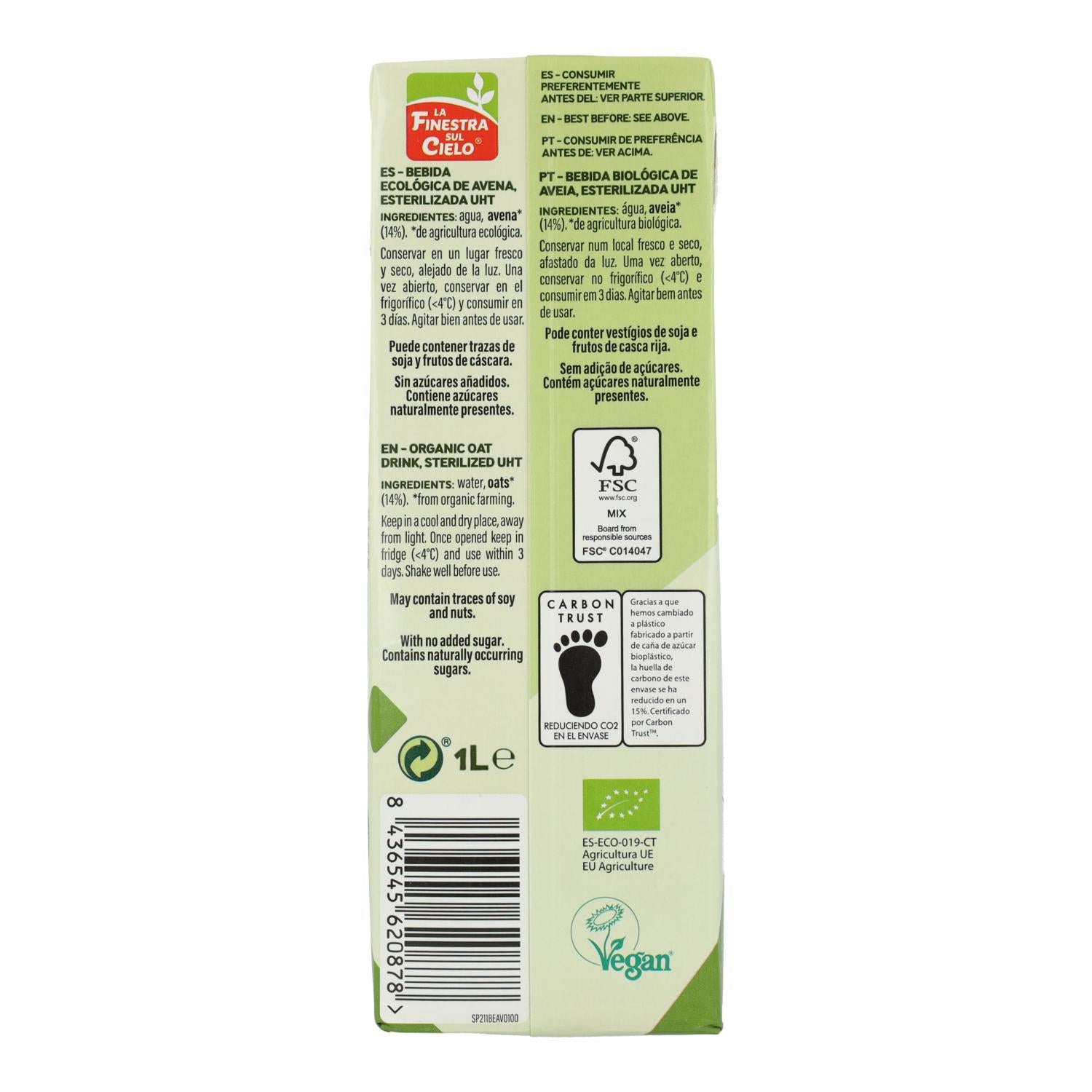 Bebida de Avena Bio La Finestra Sul Cielo 1 L