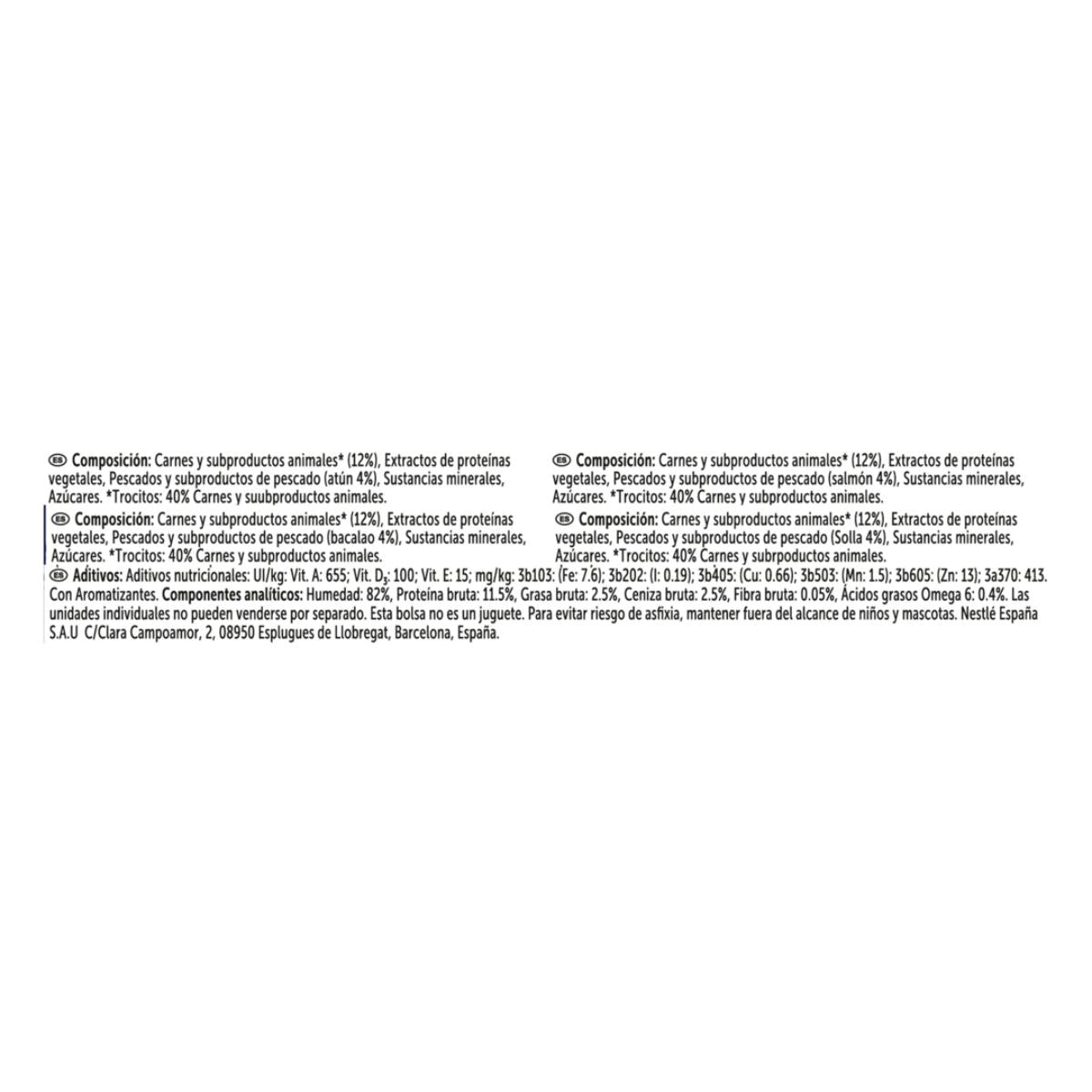 Alimentación 100% completa y equilibrada, Vitaminas D&E, Minerales Equilibrados, Fuente de Omega 6, Tiernos y jugosos trocitos en gelatina.