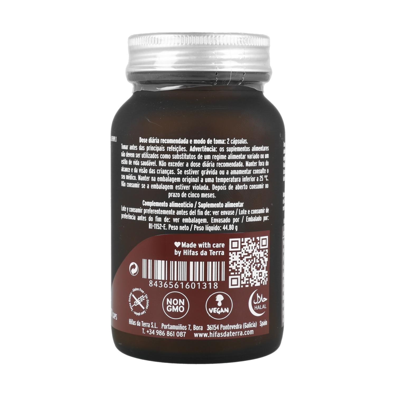 Mico Rei de Hifas da Terra es un complemento alimenticio de alta concentración que se presenta en cápsulas. Solo contiene extracto puro y ecológico de Reishi (Ganoderma lucidum) con un alto contenido de nutrientes como beta-glucanos, triterpenos, fenoles, ergosteroles, etc.